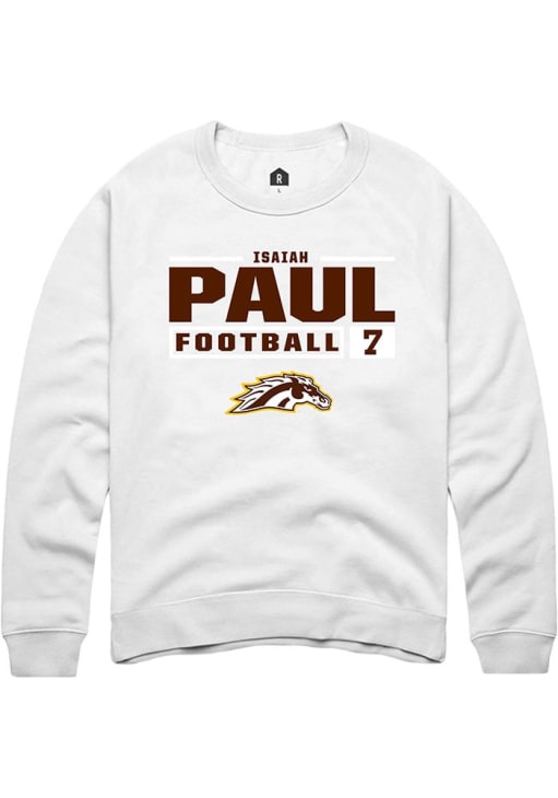 Isaiah Paul Rally Mens White Western Michigan Broncos Football NIL Stacked Box Crew Sweatshirt