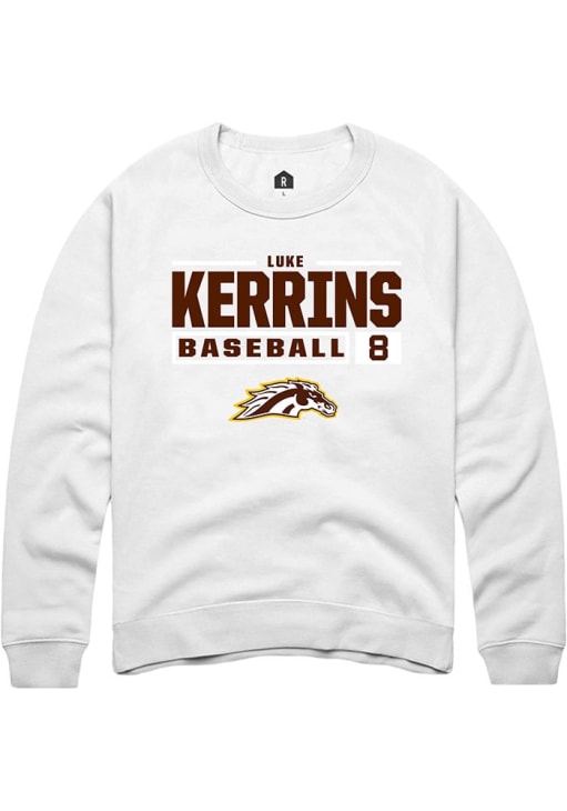 Luke Kerrins Rally Mens White Western Michigan Broncos NIL Stacked Box Crew Sweatshirt