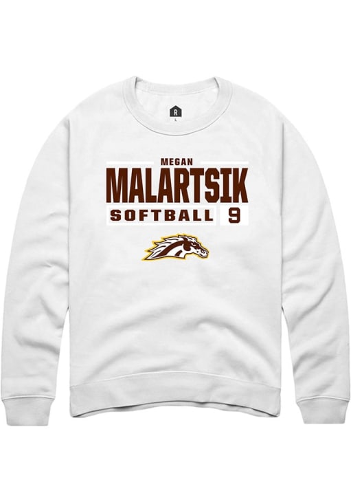 megan malartsik Rally Mens White Western Michigan Broncos NIL Stacked Box Crew Sweatshirt