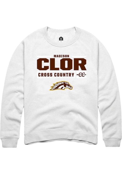 Madison Clor Rally Mens White Western Michigan Broncos NIL Stacked Box Crew Sweatshirt