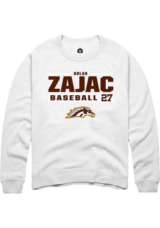 Nolan Zajac Rally Mens White Western Michigan Broncos NIL Stacked Box Crew Sweatshirt
