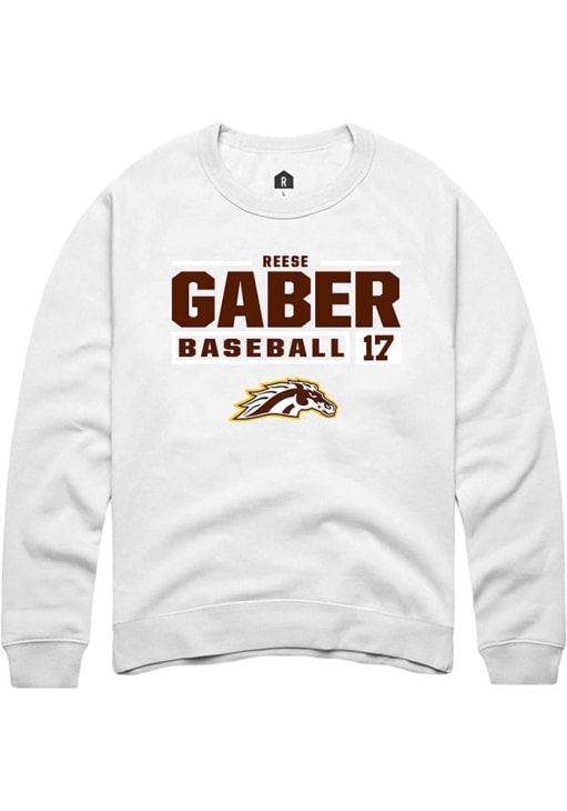 Reese Gaber Rally Mens White Western Michigan Broncos NIL Stacked Box Crew Sweatshirt