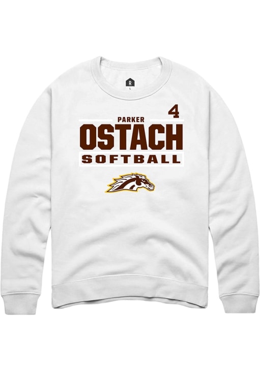Parker Ostach Rally Mens White Western Michigan Broncos NIL Stacked Box Crew Sweatshirt