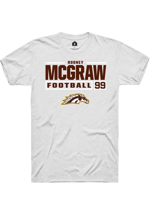 Rodney McGraw White Western Michigan Broncos Football NIL Stacked Box Short Sleeve T Shirt
