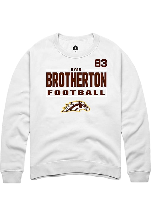Support your Western Michigan Broncos and favorite Ryan Brotherton in this Western Michigan Broncos Mens White Football NIL Stacked Box Player Crew. This Crew Sweatshirt features a NIL graphic, and is sure to stand out in the stadium. Perfect to wear on game day or any day!