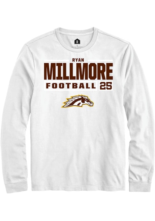 Show your Western Michigan Broncos spirit in this WMU Broncos White T Shirt! This WMU Broncos Football NIL Stacked Box Long Sleeve T Shirt makes a great layer for cooler nights cheering on the Broncos. Featuring a custom graphic with player's name and number, this Western Michigan Broncos Long Sleeve Tee is an essential addition for every fan. Go Broncos!