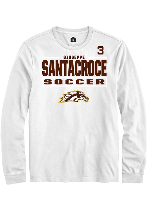 Embrace the spirit of your favorite player in this Western Michigan Broncos White NIL Stacked Box Giuseppe Santacroce Long Sleeve Player Tee! This Player T Shirt features a NIL graphic, so everyone will know you cheer for WMU Broncos, Giuseppe Santacroce! This is the perfect Broncos Player Tee for game days. Go Broncos!