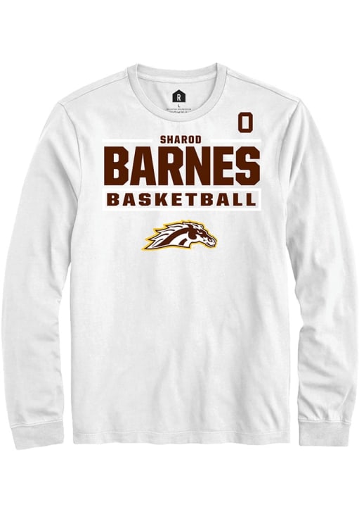 Embrace the spirit of your favorite player in this Western Michigan Broncos White NIL Stacked Box Sharod Barnes Long Sleeve Player Tee! This Player T Shirt features a NIL graphic, so everyone will know you cheer for WMU Broncos, Sharod Barnes! This is the perfect Broncos Player Tee for game days. Go Broncos!