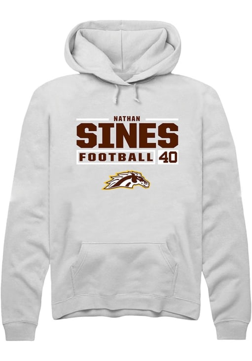 Nathan Sines Rally Mens White Western Michigan Broncos Football NIL Stacked Box Hooded Sweatshirt
