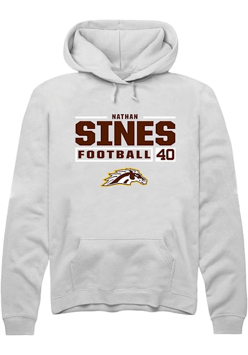 Embrace your Broncos pride and showcase your team spirit with confidence in this Western Michigan Broncos Long Sleeve Hoodie! Stay warm and stylish with the WMU Broncos Mens White Football NIL Stacked Box Hooded Sweatshirt. Designed with custom graphic with player's name and number, this Broncos Long Sleeve Hoodie is a must-have for dedicated fans.
