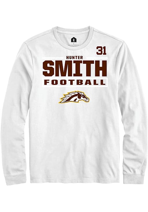 Embrace the spirit of your favorite player in this Western Michigan Broncos White Football NIL Stacked Box Hunter Smith Long Sleeve Player Tee! This Player T Shirt features a NIL graphic, so everyone will know you cheer for WMU Broncos, Hunter Smith! This is the perfect Broncos Player Tee for game days. Go Broncos!