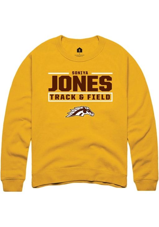 Support your Western Michigan Broncos and favorite Soniya Jones in this Western Michigan Broncos Mens Gold NIL Stacked Box Player Crew. This Crew Sweatshirt features a NIL graphic, and is sure to stand out in the stadium. Perfect to wear on game day or any day!