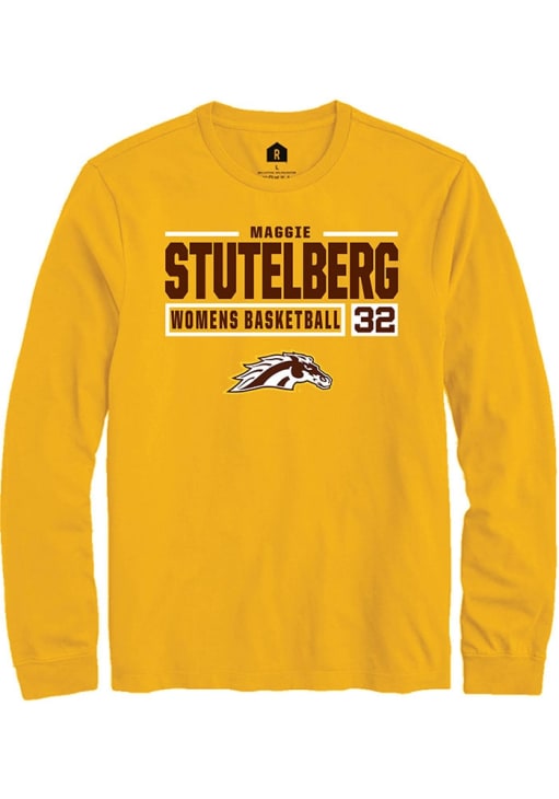 Show your Western Michigan Broncos spirit in this WMU Broncos Gold T Shirt! This WMU Broncos NIL Stacked Box Long Sleeve T Shirt makes a great layer for cooler nights cheering on the Broncos. Featuring a custom graphic with player's name and number, this Western Michigan Broncos Long Sleeve Tee is an essential addition for every fan. Go Broncos!