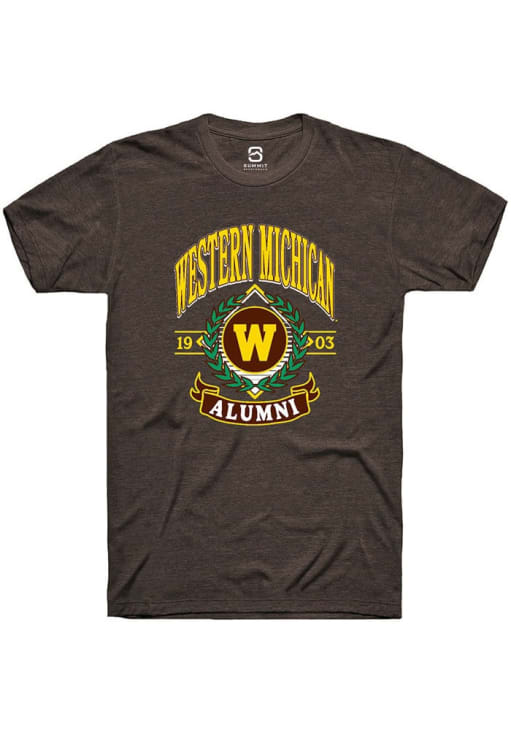 Display your team spirit with this remarkable Western Michigan Broncos Summit Sportswear Brown Alumni Wreath Short Sleeve T Shirt! The WMU Broncos Short Sleeve Tee showcases a digitally printed graphic that truly sets it apart. Stand out from the crowd and proudly declare your allegiance to the Broncos with this exceptional Brown WMU Broncos T Shirt. Go Broncos!