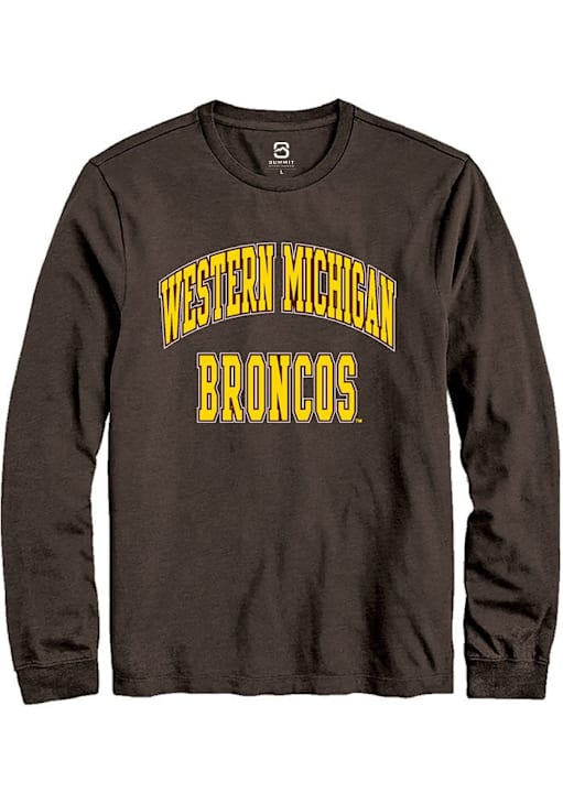 Show your Western Michigan Broncos spirit in this WMU Broncos Brown T Shirt! This WMU Broncos Arch Stack Long Sleeve T Shirt makes a great layer for cooler nights cheering on the Broncos. Featuring a digitally printed graphic, this Western Michigan Broncos Long Sleeve Tee is an essential addition for every fan. Go Broncos!