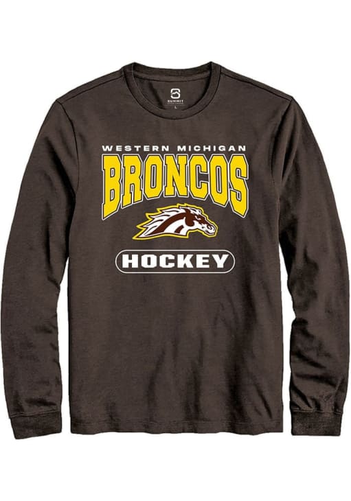 Show your Western Michigan Broncos spirit in this WMU Broncos Brown T Shirt! This WMU Broncos Hockey Long Sleeve T Shirt makes a great layer for cooler nights cheering on the Broncos. Featuring a digitally printed graphic, this Western Michigan Broncos Long Sleeve Tee is an essential addition for every fan. Go Broncos!