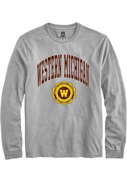 Show your Western Michigan Broncos spirit in this WMU Broncos Grey T Shirt! This WMU Broncos Arch Seal Long Sleeve T Shirt makes a great layer for cooler nights cheering on the Broncos. Featuring a digitally printed graphic, this Western Michigan Broncos Long Sleeve Tee is an essential addition for every fan. Go Broncos!