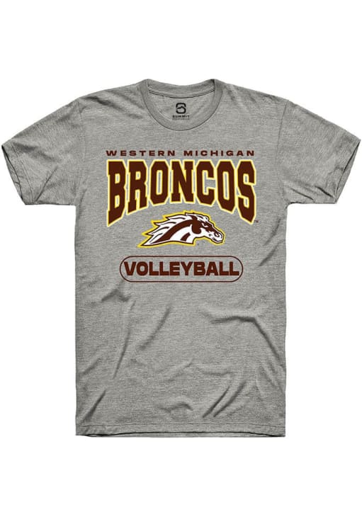 Display your team spirit with this remarkable Western Michigan Broncos Summit Sportswear Grey Volleyball Short Sleeve T Shirt! The WMU Broncos Short Sleeve Tee showcases a digitally printed graphic that truly sets it apart. Stand out from the crowd and proudly declare your allegiance to the Broncos with this exceptional Grey WMU Broncos T Shirt. Go Broncos!