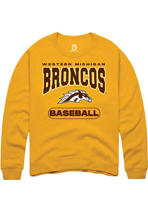Gear up for the ultimate game day experience with this remarkable Western Michigan BroncosMens Gold Baseball Crew Sweatshirt! Designed with the true fan in mind, this Broncos Long Sleeve Crew Sweatshirt features a digitally printed graphic. Stay warm and comfortable with this Mens WMU Broncos Broncos Crew Sweatshirt.