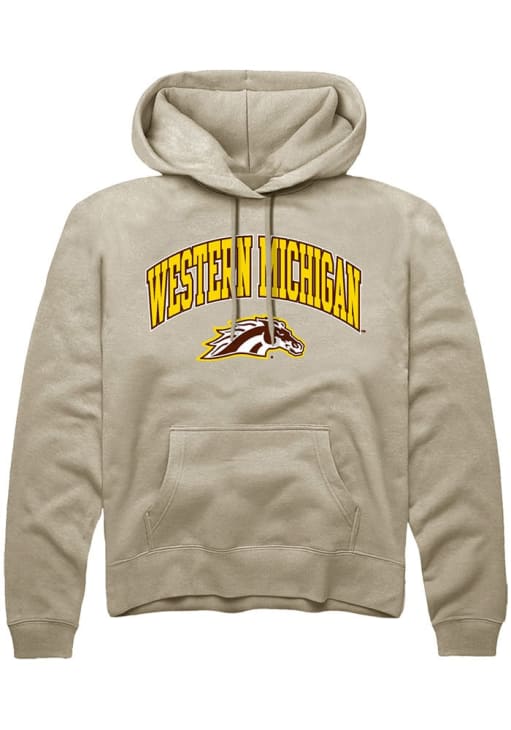 Embrace your Broncos pride and showcase your team spirit with confidence in this Western Michigan Broncos Long Sleeve Hoodie! Stay warm and stylish with the WMU Broncos Mens Tan Arch Logo Hooded Sweatshirt. Designed with digitally printed graphic, this Broncos Long Sleeve Hoodie is a must-have for dedicated fans.