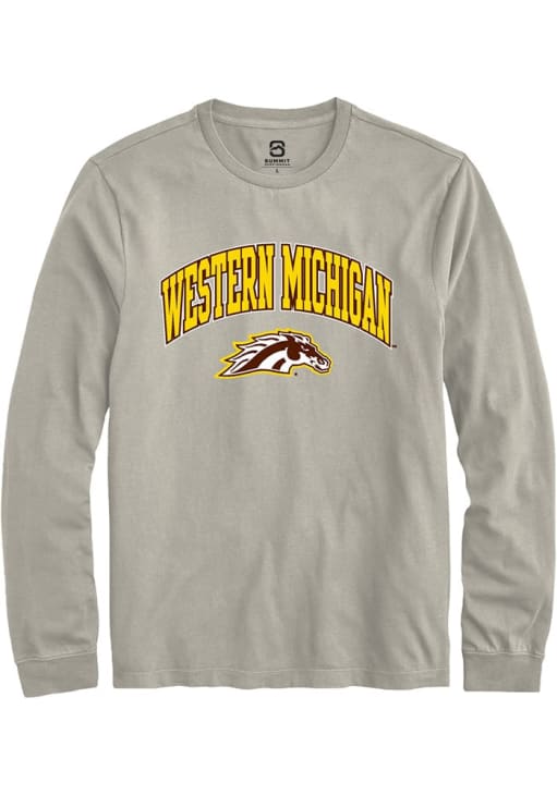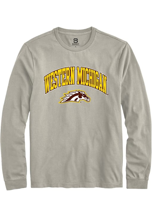 Show your Western Michigan Broncos spirit in this WMU Broncos Tan T Shirt! This WMU Broncos Arch Logo Long Sleeve T Shirt makes a great layer for cooler nights cheering on the Broncos. Featuring a digitally printed graphic, this Western Michigan Broncos Long Sleeve Tee is an essential addition for every fan. Go Broncos!