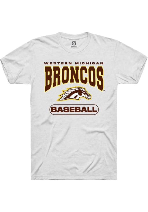 Display your team spirit with this remarkable Western Michigan Broncos Summit Sportswear White Baseball Short Sleeve T Shirt! The WMU Broncos Short Sleeve Tee showcases a digitally printed graphic that truly sets it apart. Stand out from the crowd and proudly declare your allegiance to the Broncos with this exceptional White WMU Broncos T Shirt. Go Broncos!