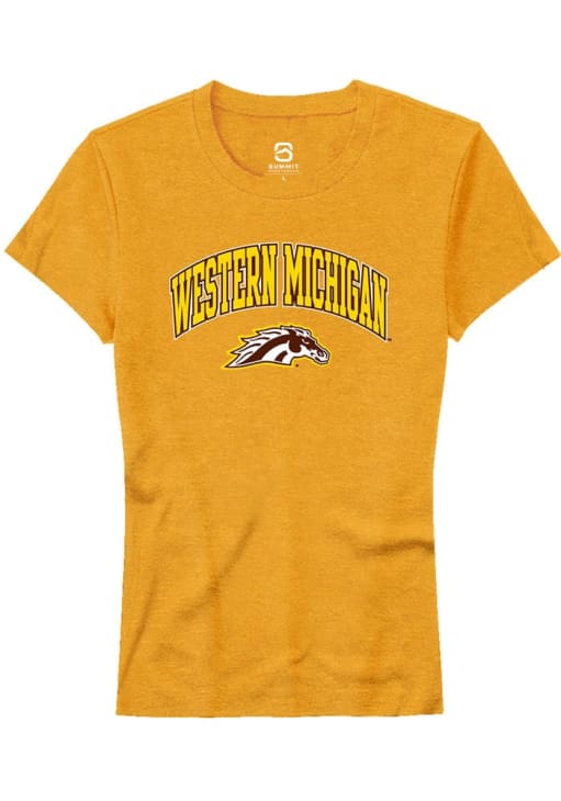 Display your team spirit with this remarkable Western Michigan Broncos Gold Arch Logo Short Sleeve T-Shirt! The WMU Broncos Short Sleeve Tee showcases a digitally printed graphic that truly sets it apart. Stand out from the crowd and proudly declare your allegiance to the Broncos with this exceptional Gold WMU Broncos T-Shirt. Go Broncos!