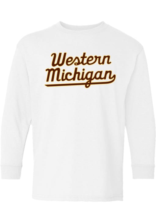 Your little Broncos fan a will love supporting the Western Michigan Broncos in this White Long Sleeve T-Shirt. This Script T-Shirt features a screen print team graphic.