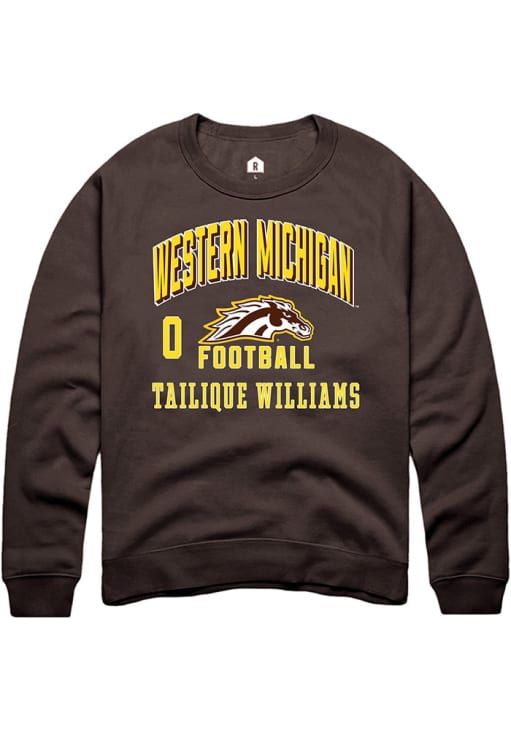 Support your Western Michigan Broncos and favorite Tailique Williams in this Western Michigan Broncos Mens Brown Football NIL Arch Logo Player Crew. This Crew Sweatshirt features a NIL graphic, and is sure to stand out in the stadium. Perfect to wear on game day or any day!