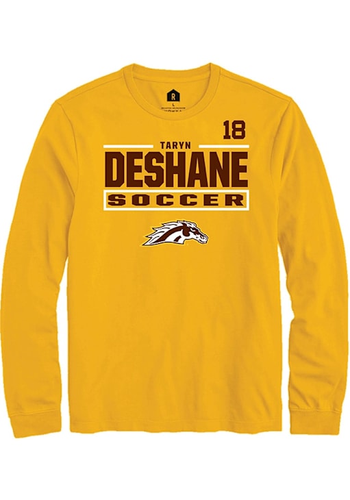 Embrace the spirit of your favorite player in this Western Michigan Broncos Gold NIL Stacked Box Taryn Deshane Long Sleeve Player Tee! This Player T Shirt features a NIL graphic, so everyone will know you cheer for WMU Broncos, Taryn Deshane! This is the perfect Broncos Player Tee for game days. Go Broncos!