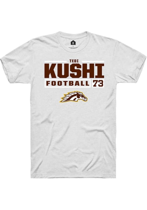 Display your team spirit with this remarkable Western Michigan Broncos White Football NIL Stacked Box Short Sleeve T Shirt! The WMU Broncos Short Sleeve Tee showcases a custom graphic with player's name and number that truly sets it apart. Stand out from the crowd and proudly declare your allegiance to the Broncos with this exceptional White WMU Broncos T Shirt. Go Broncos!