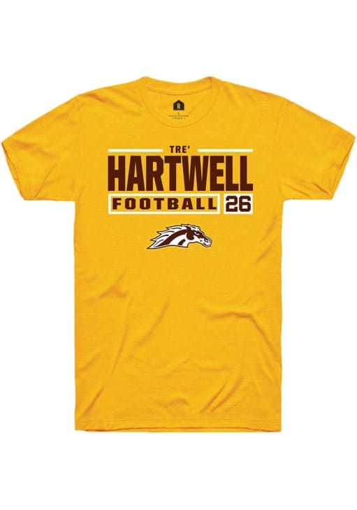Tre' Hartwell Gold Western Michigan Broncos Football NIL Stacked Box Short Sleeve T Shirt