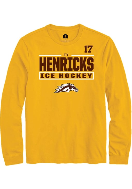 Embrace the spirit of your favorite player in this Western Michigan Broncos Gold NIL Stacked Box Ty Henricks Long Sleeve Player Tee! This Player T Shirt features a NIL graphic, so everyone will know you cheer for WMU Broncos, Ty Henricks! This is the perfect Broncos Player Tee for game days. Go Broncos!