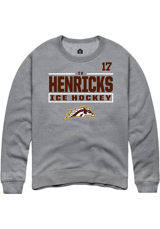 Support your Western Michigan Broncos and favorite Ty Henricks in this Western Michigan Broncos Mens Grey NIL Stacked Box Player Crew. This Crew Sweatshirt features a NIL graphic, and is sure to stand out in the stadium. Perfect to wear on game day or any day!