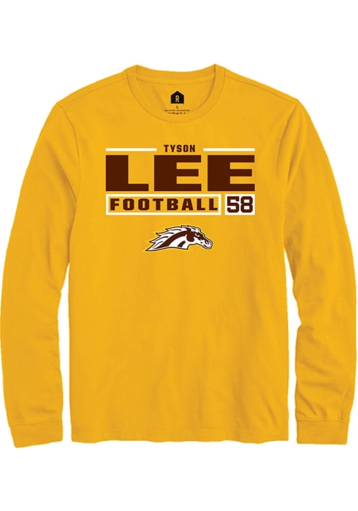 Tyson Lee Rally Mens Gold Western Michigan Broncos Football NIL Stacked Box Tee