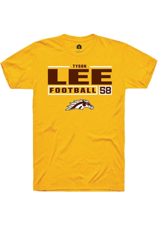 Tyson Lee Gold Western Michigan Broncos Football NIL Stacked Box Short Sleeve T Shirt