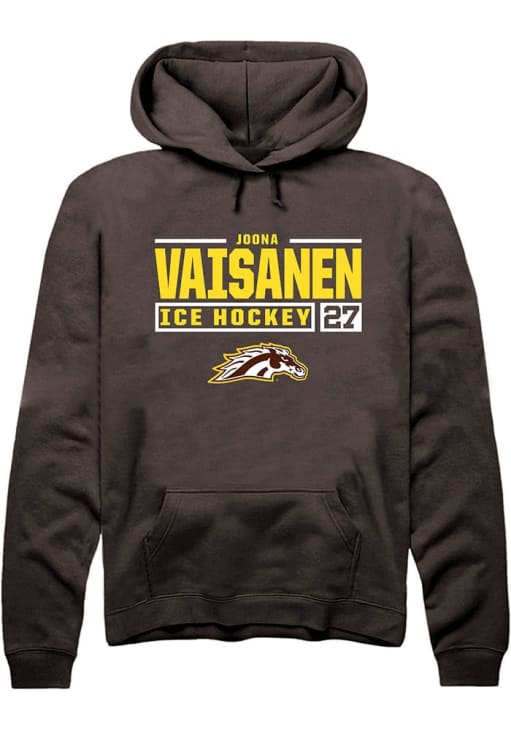 Joona Vaisanen Rally Mens Brown Western Michigan Broncos NIL Stacked Box Hooded Sweatshirt