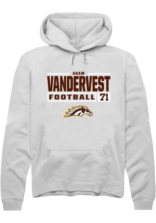 Adam Vandervest Rally Mens White Western Michigan Broncos Football NIL Stacked Box Hooded Sweatshi..