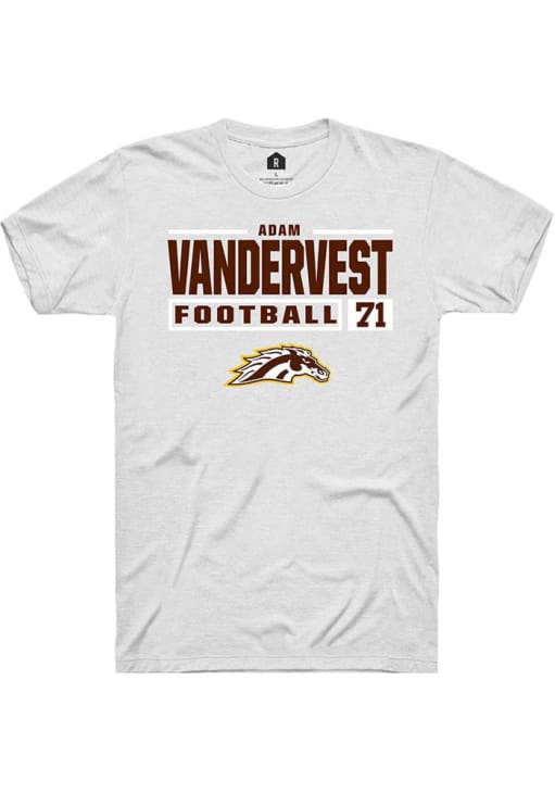 Adam Vandervest White Western Michigan Broncos Football NIL Stacked Box Short Sleeve T Shirt