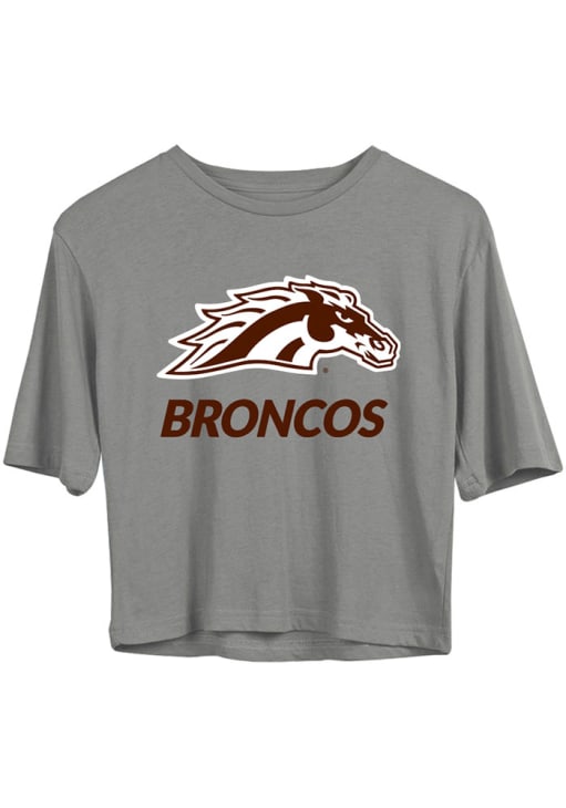 Support your favorite team in this Girls Grey Western Michigan Broncos Rosie Short Sleeve T-Shirt! This T-Shirt features a Screen print team logo, so everyone will know your favorite team is the WMU Broncos! This is the perfect Western Michigan Broncos Girls T-Shirt for wearing to game day or everyday. Go Broncos!