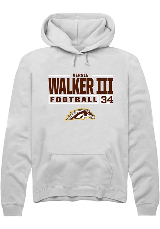 Versie Walker III Rally Mens White Western Michigan Broncos Football NIL Stacked Box Hooded Sweats..