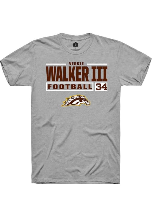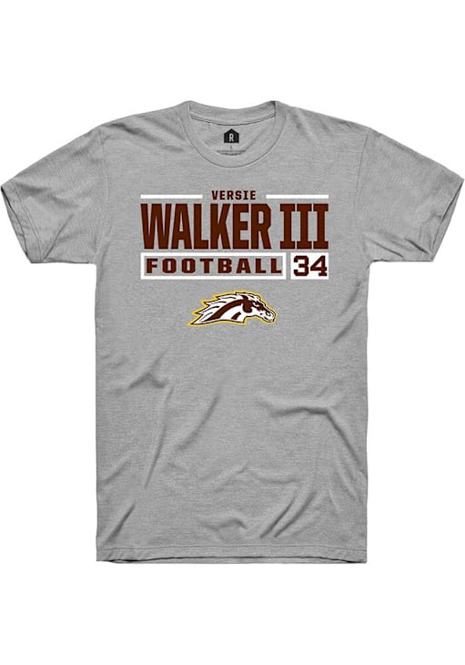 Versie Walker III Grey Western Michigan Broncos Football NIL Stacked Box Short Sleeve T Shirt