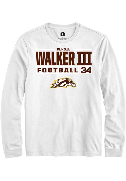Show your Western Michigan Broncos spirit in this WMU Broncos White T Shirt! This WMU Broncos Football NIL Stacked Box Long Sleeve T Shirt makes a great layer for cooler nights cheering on the Broncos. Featuring a custom graphic with player's name and number, this Western Michigan Broncos Long Sleeve Tee is an essential addition for every fan. Go Broncos!