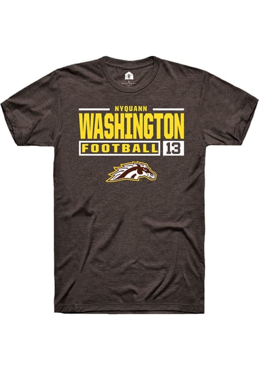 Nyquann Washington Brown Western Michigan Broncos Football NIL Stacked Box Short Sleeve T Shirt