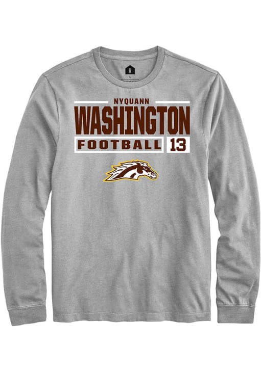 Nyquann Washington Rally Mens Grey Western Michigan Broncos Football NIL Stacked Box Tee