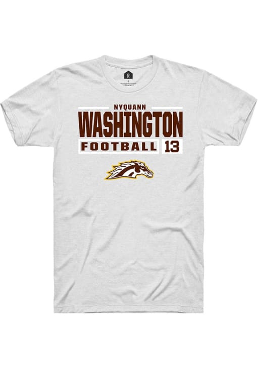 Nyquann Washington White Western Michigan Broncos Football NIL Stacked Box Short Sleeve T Shirt