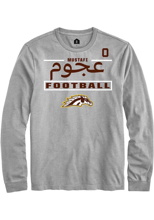 Embrace the spirit of your favorite player in this Western Michigan Broncos Grey Football NIL Stacked Box Mustafi Al-Gawari Long Sleeve Player Tee! This Player T Shirt features a NIL graphic, so everyone will know you cheer for WMU Broncos, Mustafi Al-Gawari! This is the perfect Broncos Player Tee for game days. Go Broncos!