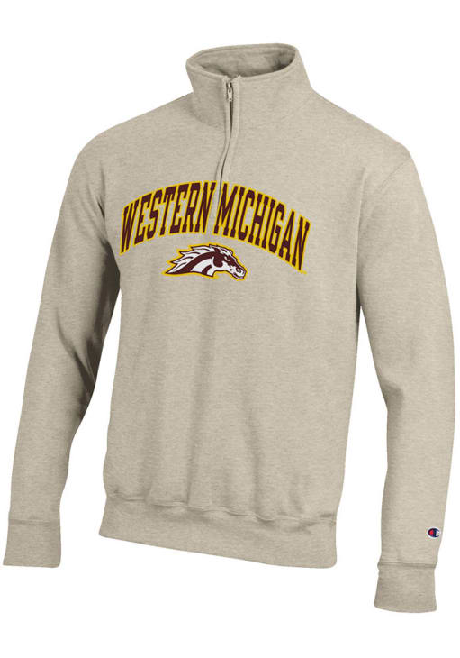 Embrace the warmth and showcase your Broncos pride with our Western Michigan Broncos Long Sleeve Qtr Zip Pullover. This Mens Oatmeal Arch Mascot Powerblend Long Sleeve Pullover offers a embroidered team logo with mascot under across chest for the perfect combination of comfort and style. Elevate your everyday look with this must-have Western Michigan Broncos Long Sleeve Qtr Zip Pullover.