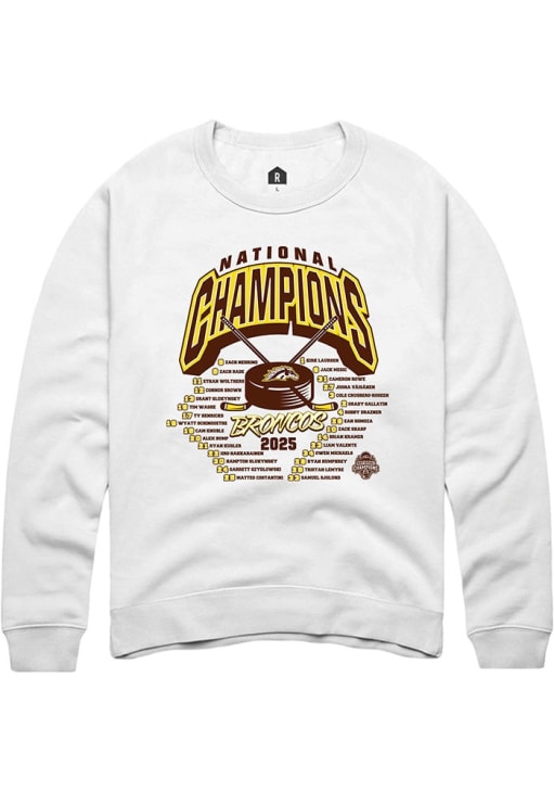 Support your Western Michigan Broncos and favorite in this Western Michigan Broncos Mens White NIL 2025 National Champions Full Roster Player Crew. This Crew Sweatshirt features a screen print graphic, and is sure to stand out in the stadium. Perfect to wear on game day or any day!