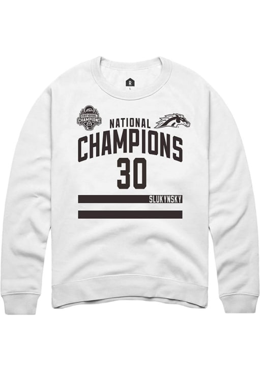 Support your Western Michigan Broncos and favorite Hampton Slukynsky in this Western Michigan Broncos Mens White NIL 2025 National Champions Shirzee Player Crew. This Crew Sweatshirt features a NIL graphic, and is sure to stand out in the stadium. Perfect to wear on game day or any day!